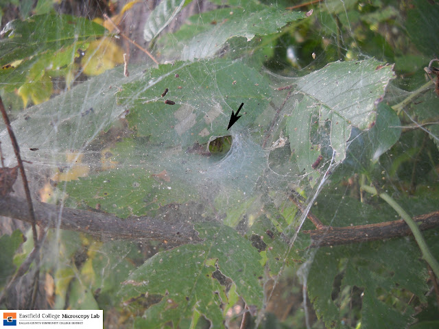 At the southeast end of the Great Egret Pond - which by the way had Great Egrets on it - if found some funnel-web spiders. (The trail along the western edge of Whistling Duck Pond also has many of these webs.)